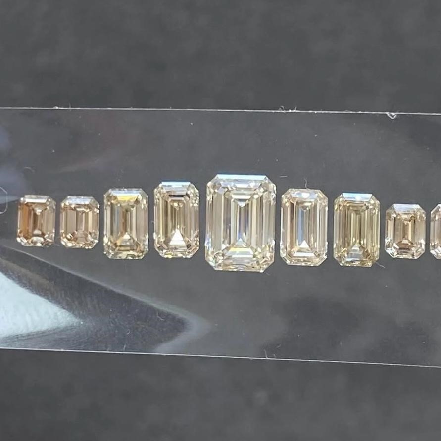 4.56ct layout of 9 natural peachy brown emerald cut diamonds VVS–VS clarity