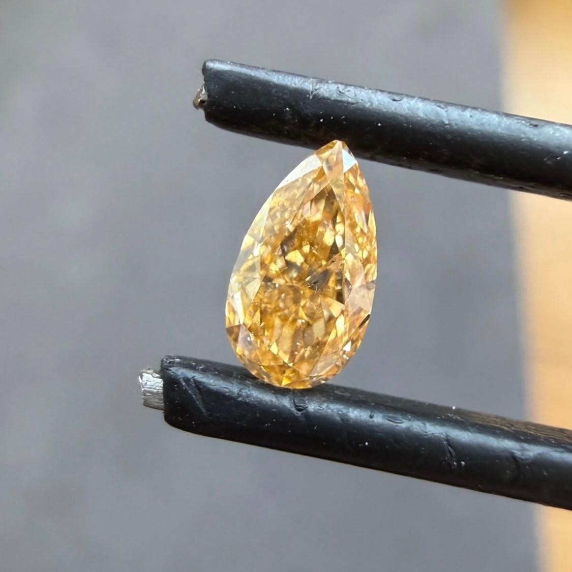 0.43cts GIA certified natural fancy yellow-orange I1 clarity pear shape diamond