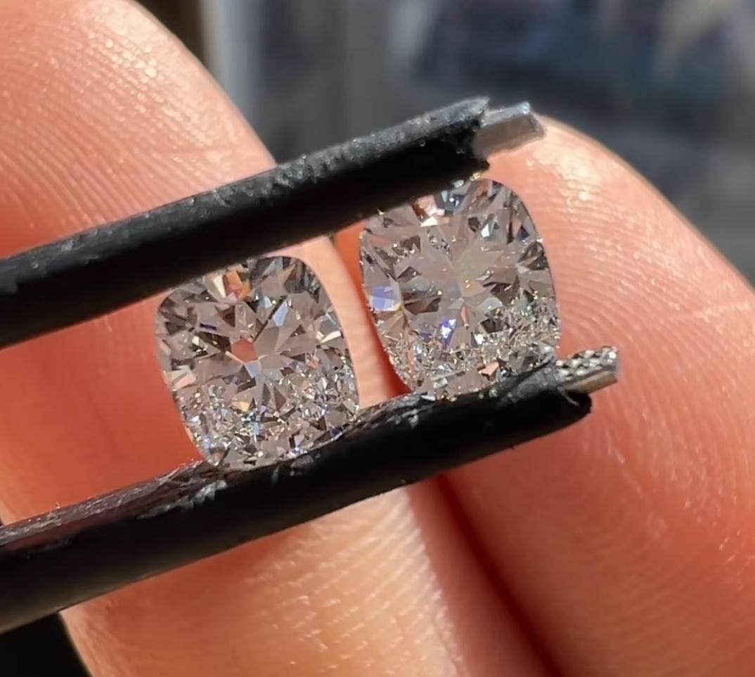 0.51ct & 0.52ct GIA Certified Natural F Color VS2 Clarity Elongated Cushion Cut Diamond.