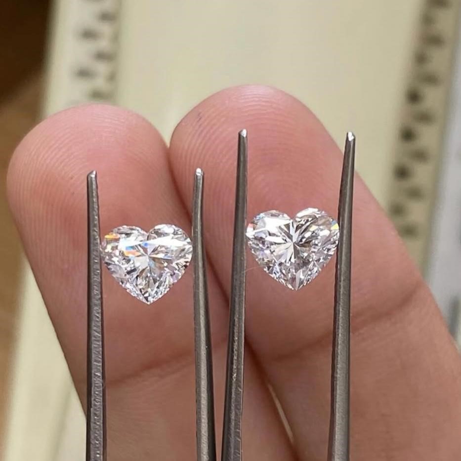 0.90ct and 0.91ct, both GIA certified, both D color, both VS2 clarity. A perfectly matched pair of heart shape diamonds that truly feel special.