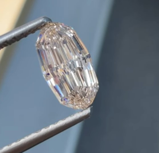 1.03ct GIA Certified Natural L Color Faint Brown VS2 Clarity Elongated Oval Shape Step Cut Diamond.