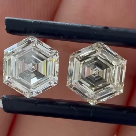 1.03cts GIA certified M color VVS2 & 1.02cts GIA certified M color VVS1 clarity hexagon step cut diamond pair