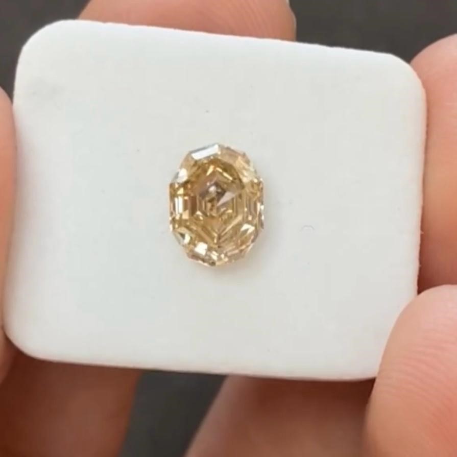 1.13 carat Natural Peachy Brown Step Cut Oval Diamond