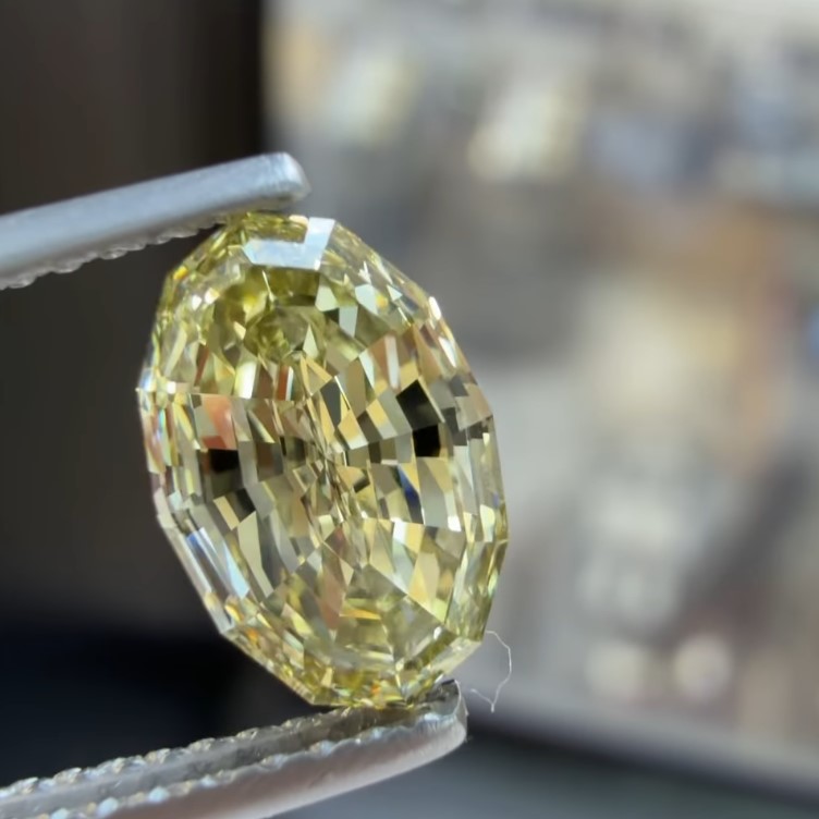 1.62ct GIA Certified Natural Fancy Grayish Greenish Yellow VVS2 Clarity Step Cut Oval Shape Diamond
