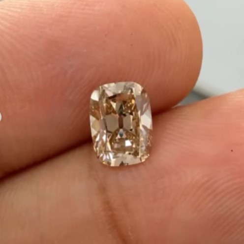 1ct natural light peachy brown VVS2 clarity old cut cushion shape diamond