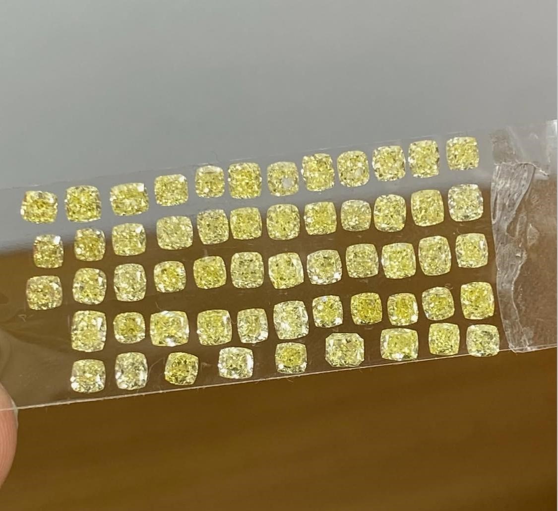 8.64ct is a layout of all cushion Shape Natural Fancy Yellow Cushion Cut diamond layout.