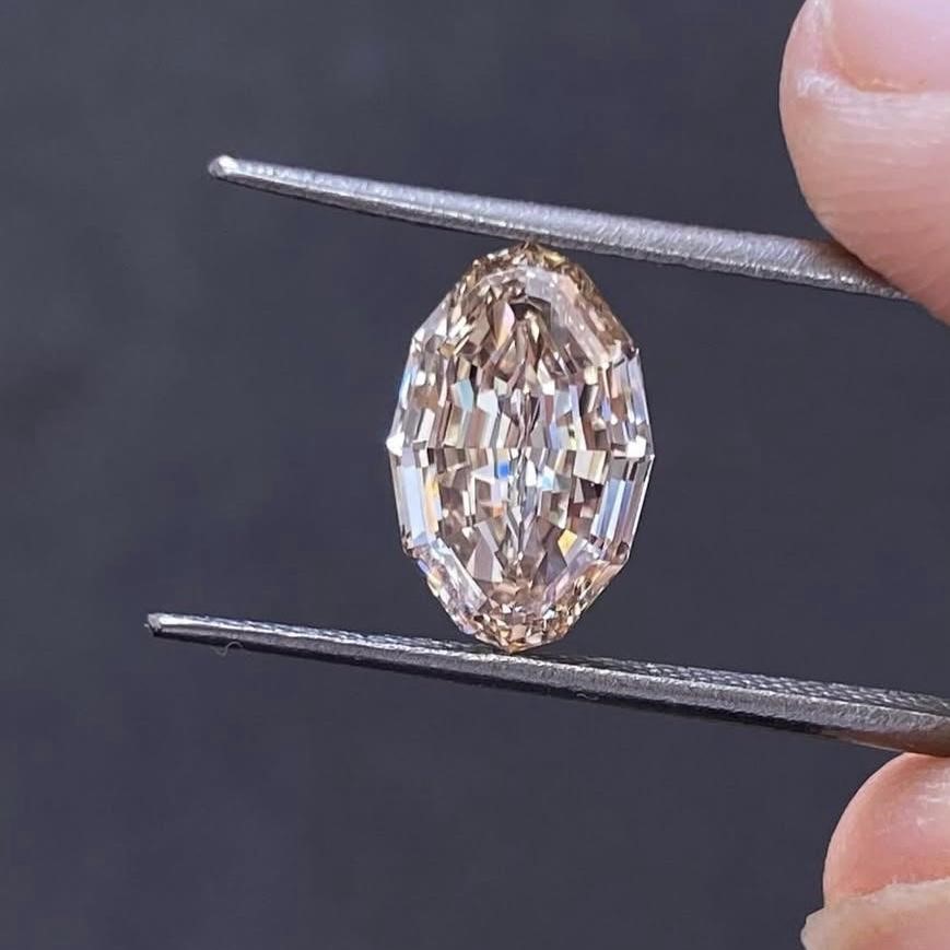 A 2.13 carat natural light peachy brown step cut oval diamond with VS1 clarity and the most graceful, elongated silhouette.
