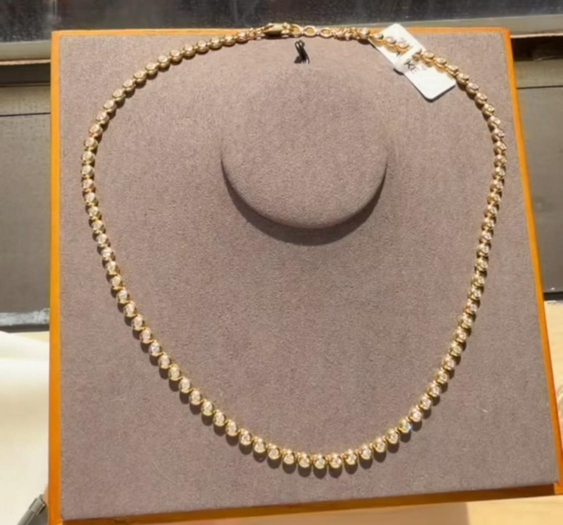 Natural Round Brilliant Cut Diamond Bubble Necklace in 18k Gold.