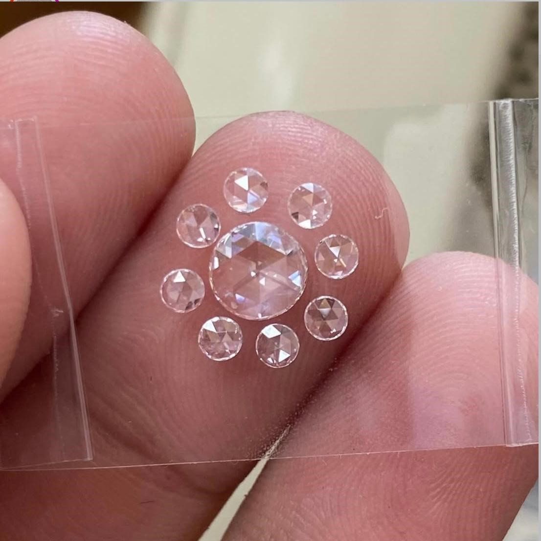 The centre 0.34ct natural F color VS1 rosecut is framed beautifully with eight matching rosecut diamonds totalling 0.23cts,