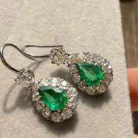 These stunning Zambian Emerald Pear Shape Gemstone Dangling Earrings. Featuring 24 genuine vintage diamonds (3.95ct) and 2 natural emeralds (2.04ct) set in 18k gold (4.13grams)