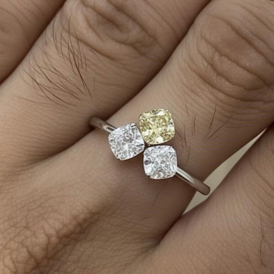 0.45 ct MN color VS1 clarity Cushion-shaped diamond, Left Stone: 0.45 ct GIA certified K color VVS1 clarity Cushion-shaped diamond,Right Stone: 0.52 ct GIA certified H color VVS1 clarity Cushion-shaped diamond.perfect trio for ring