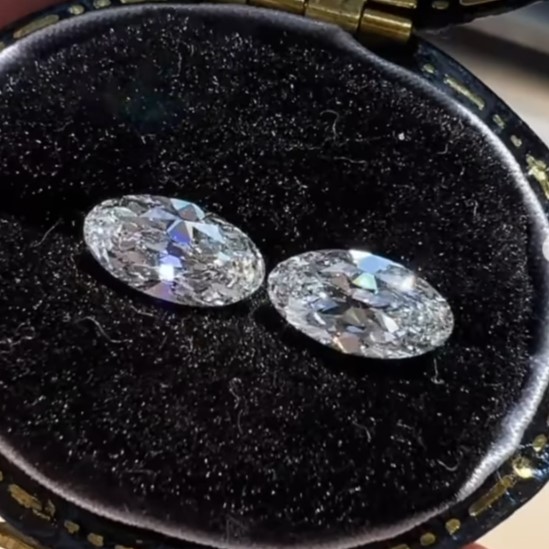 0.51ct & 0.52ct GIA Certified Matching Pair Of Natural E Color VS2 Moval Shape Old Cut Diamonds