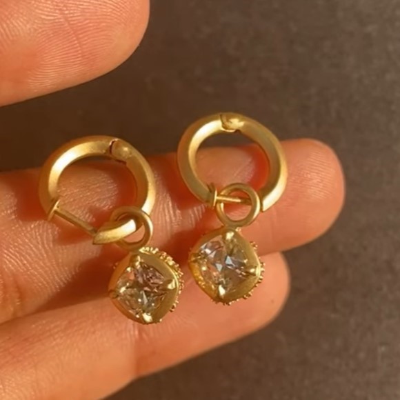 0.60ct & 0.60ct GIA Certified Natural White Diamond Old Cut Cushion Shape Dangling Earings in 18k Yellow Gold