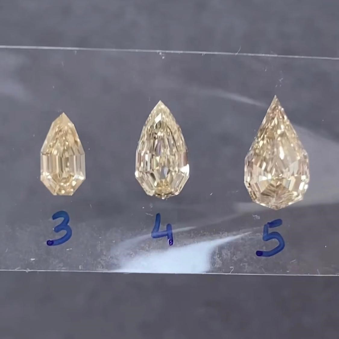 disclamier:photo is for reference only. only the 4th stone in photo i.e 0.77cts Natural champagne brown VS1 clarity step cut pear shape diamond. Bright and balanced in shape. is for sale
