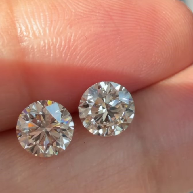 1.00ct & 1.00ct GIA Certified Natural O to P range & Q to R range Light Brown VS2 Clarity Round Brilliant Cut Diamond