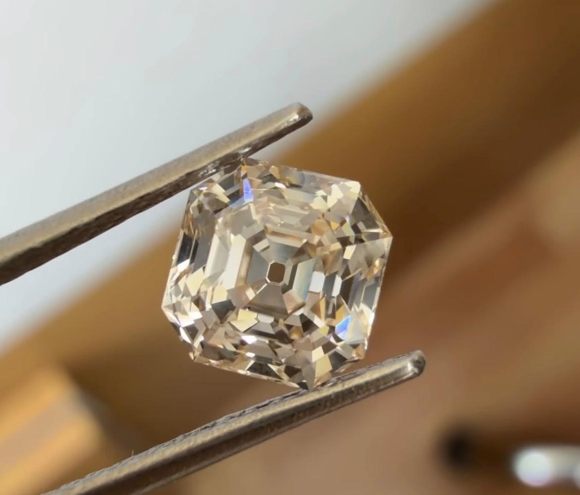 1.07ct Natural Light Peachy Brown (o to p range) VVS2 Clarity Old Antique Cut Asscher Shape Diamond.