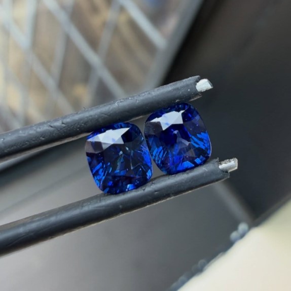 2.04ct Total Weight Matching Pair Of Natural Ceylon Blue Sapphire Heated Cushion Shape Gemstone