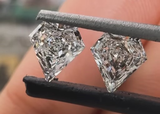 Matching Pair of 0.62ct Superman-Shaped Diamonds, F-color, VVS2-clarity diamonds—