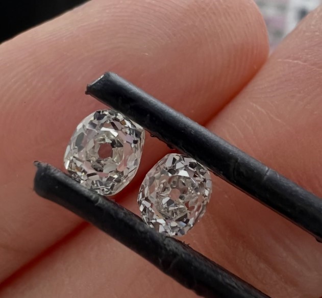 A 0.91ct Total Weight Matching Pair Of Natural IJ Color VS Clarity Old Miner Cut Diamonds.