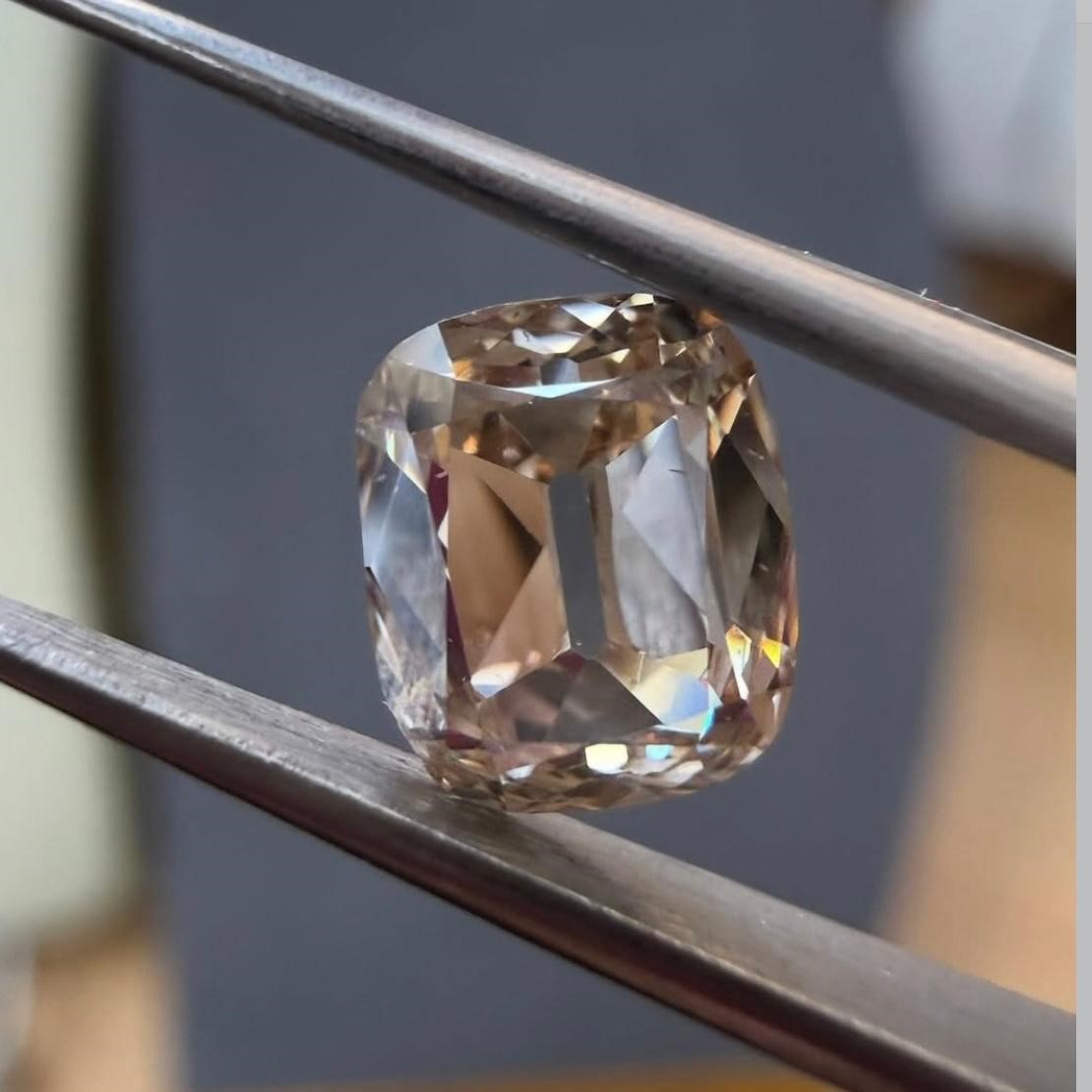 1cts Natural light peachy brown si1 clarity old cut cushion shape diamond.