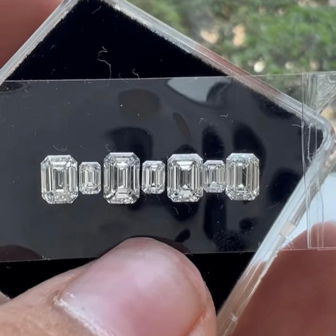 A 2.56cts total weight parcel of 7pcs Natural GHI color VS clarity emerald shape diamonds