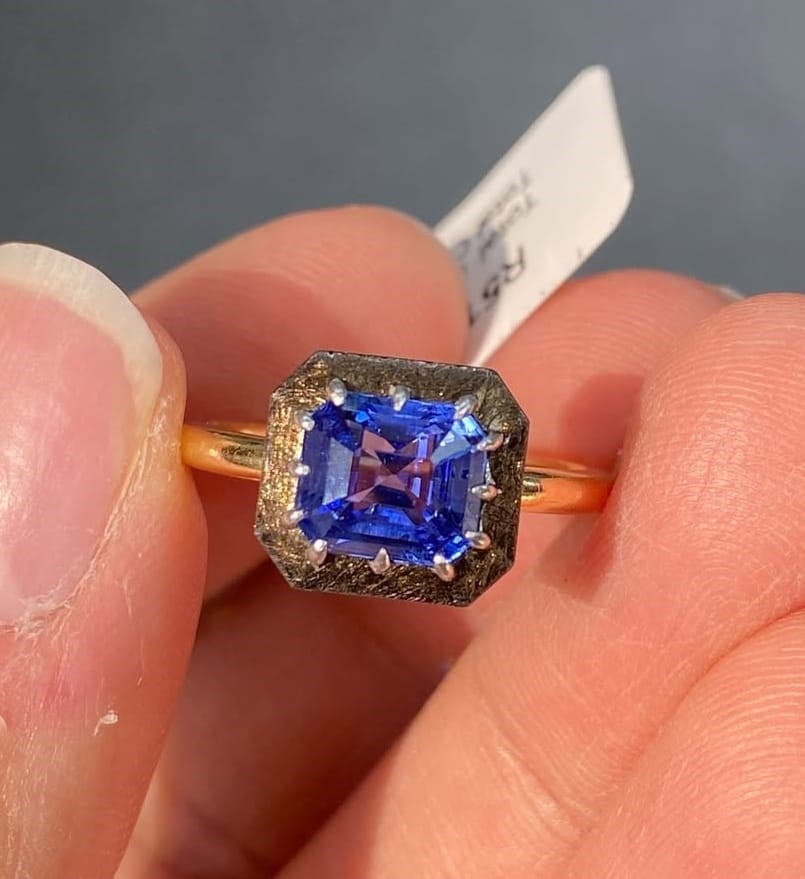 A GIA Certified 2.51ct Natural Ceylon Blue Sapphire Heated Emerald cut set in 18k Gold Ring.