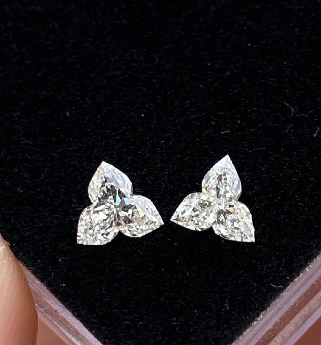 Adorn your ears with this charming pair of 0.63ct total weight J color VS-SI clarity flower shape diamonds.
