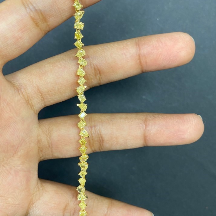 Natural fancy yellow mix shape full tennis bracelet set in 18k yellow gold