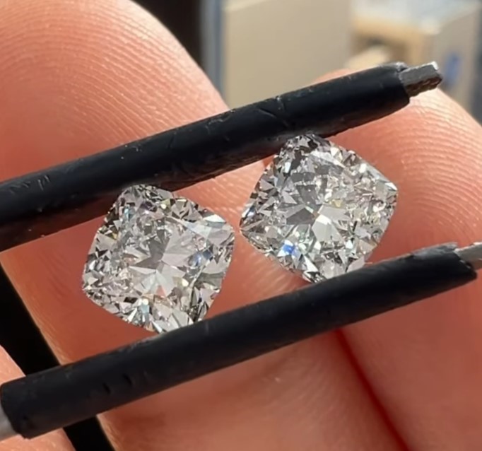 Natural GIA Certified Matching Pair H Color VVS2 Cushion Cut Diamonds